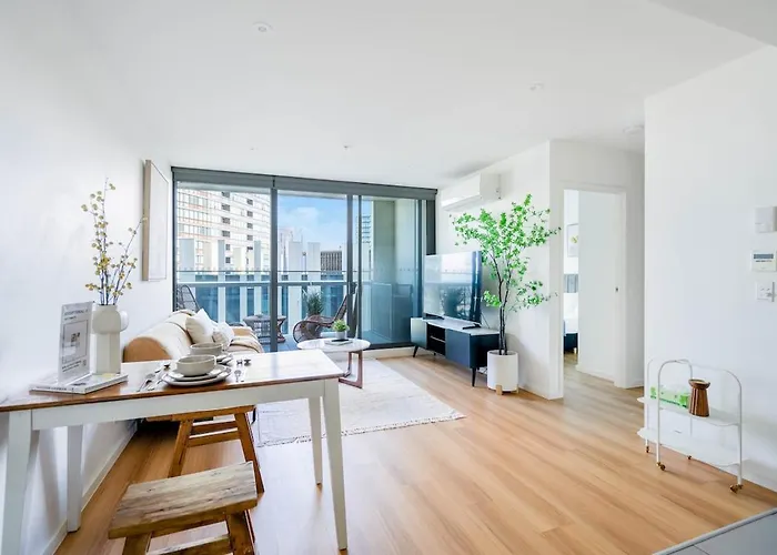 Een complete keuken in het appartement is voorzien van een oven en een vaatwasser. De Collins Square/Collins Street bushalte is op 10 minuten wandelafstand. Dankzij de beschikbaarheid van een overdekt zwembad kunnen gasten een meer ontspannen verblijf hebben.